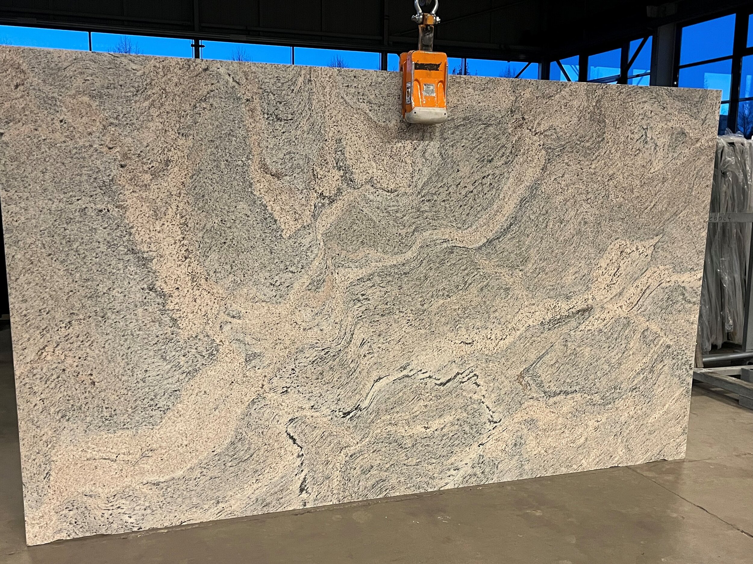 Cielo de Ivory, ein Gneis aus Indien, gleicht einem majestätischen Himmel. Seine sanften Farbtöne erinnern an Wolken, während seine geschichtete Textur wie das Fließen von Gewässern wirkt.
